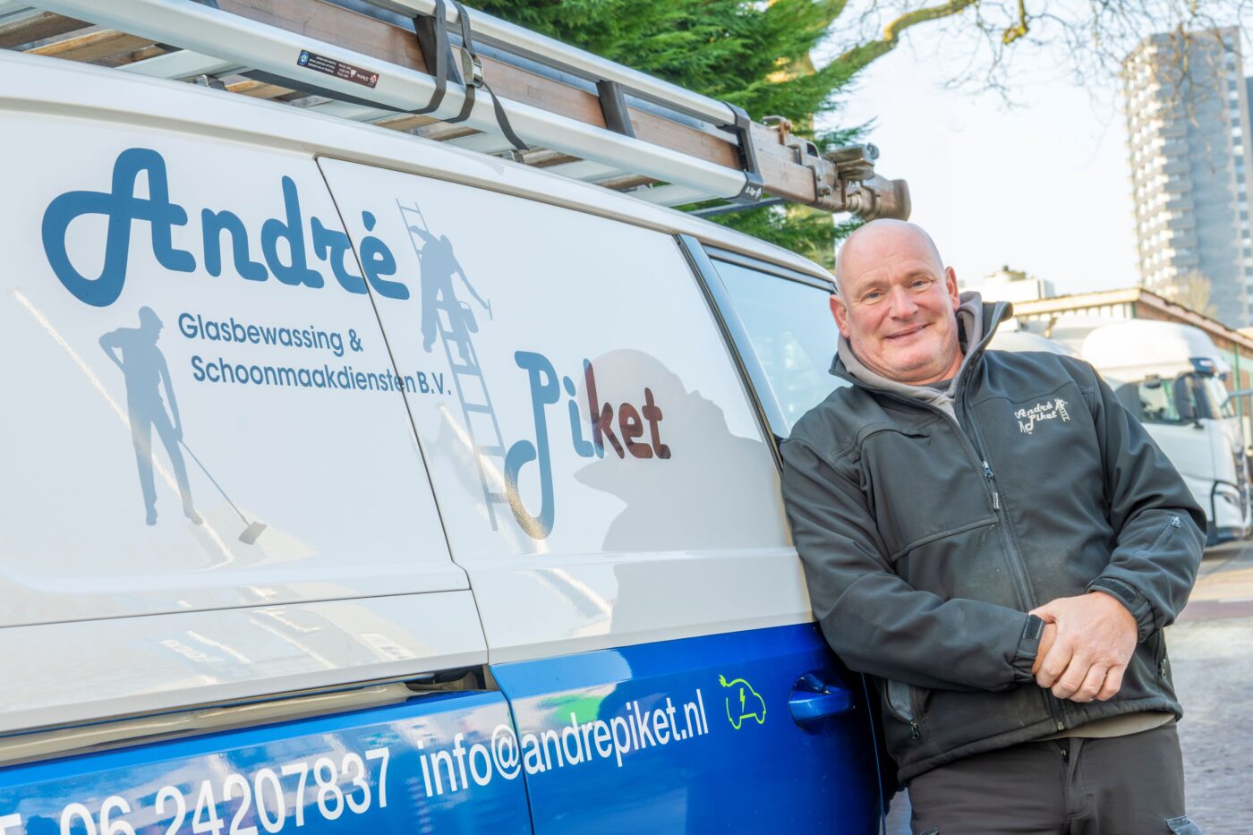 André Piket, al ruim 30 jaar ondernemer in Leiden, is een aantal jaar geleden al begonnen met de voorbereiding op de zero-emissiezone. Voor zijn glasbewassing en schoonmaakdiensten heeft hij nu elektrisch vervoer. “Ik zag de verandering aankomen. Dan kun je maar beter voorbereid zijn.”