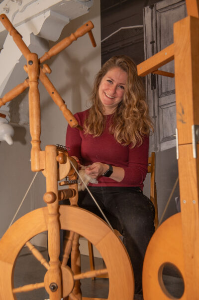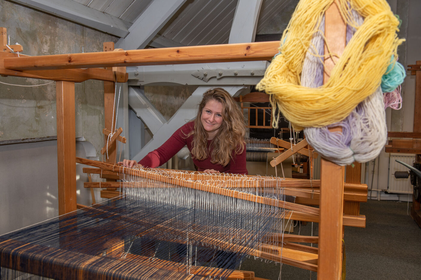 In het pand aan het Papegaaisbolwerk wordt handmatig gesponnen en geverfd en worden op kleine schaal dekens gemaakt. De wol is voornamelijk afkomstig van Leidse schapen. Natasja: “Hier leren we het vak. Nog dit jaar gaan we zelf aan de slag. Daarbij willen wij zoveel mogelijk gebruik maken van wol uit de regio en van natuurlijke verfstoffen.”