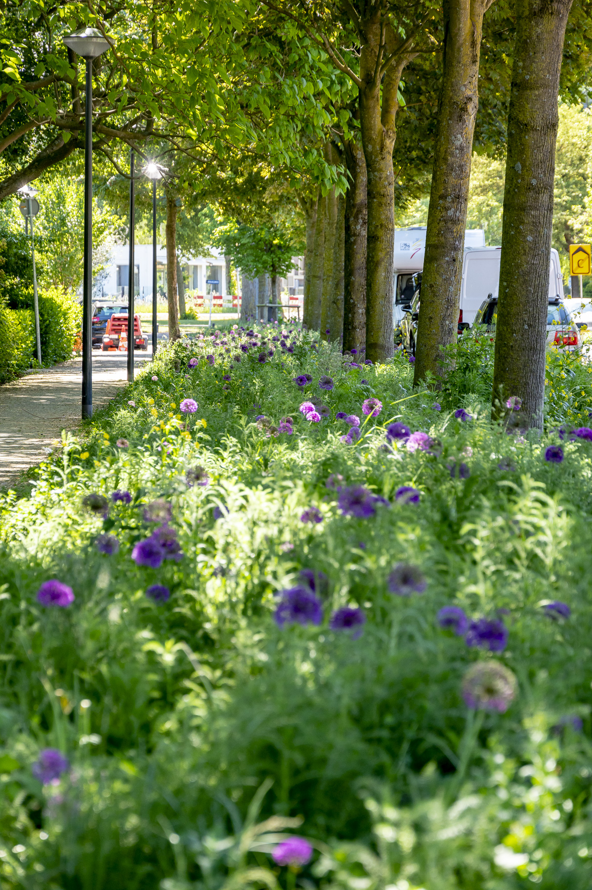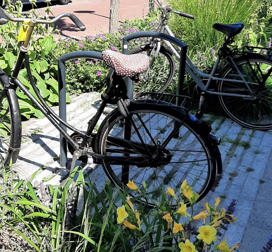 Als de klinkers in de weg net wat verder uit elkaar worden gelegd, kan het regenwater er gemakkelijker tussendoor wegzakken. Op parkeerplekken voor auto’s of fietsen kan ook doorgroeibare verharding komen, waar kleine plantjes doorheen kunnen groeien. Ook nog eens goed voor de biodiversiteit.